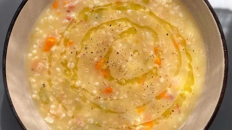 Un abbraccio di pentola che trasforma l'umile orzo in un'esperienza di profondità rustica e conforto sostanzioso. Questa minestra non promette solo di riscaldare, ma di nutrire con una generosità contadina, dove ogni cucchiaiata è un equilibrio tra la ricchezza terrosa dei legumi e il tocco salino del guanciale croccante. È la promessa di un piatto unico che sa di focolare domestico e di stagione rispettata.