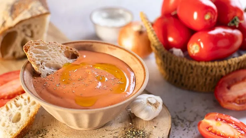 Il segreto risiede nel contrasto sensoriale magistrale: la vellutata consistenza della zuppa, ottenuta dalla lenta cottura dei pomodori fino a farne sprigionare tutta la loro dolcezza, si scontra piacevolmente con il pane croccante, che offre una nota tattile friabile e dorata. L'aglio e la cipolla, appena soffritti, forniscono una base aromatica profonda ma mai invadente, mentre un filo d'olio extravergine a crudo aggiunge un finale erbaceo e pepato che lega ogni boccone.