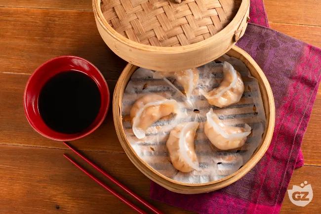 cuore di ripieno intensamente profumato. Questi dumplings non sono solo un piatto, ma un'esperienza tattile e visiva che seduce prima ancora di assaggiarli, con la loro membrana elastica che trattiene un tesoro di umami. La magia risiede nel contrasto tra la leggerezza quasi evanescente dell'involucro, che cede al primo morso rilasciando un vapore aromatico, e la generosità succosa del ripieno di gamberi e maiale.