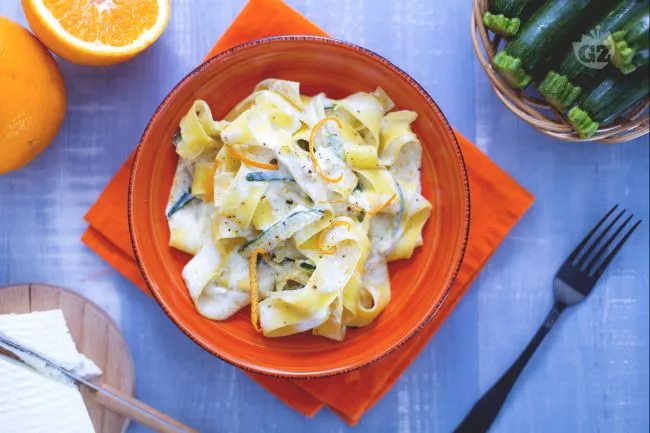 La magia risiede nei contrasti sensoriali: le zucchine, ridotte in delicate strisce dorate dall'olio extravergine e dall'aglio, rilasciano una dolcezza terrosa che viene avvolta dalla crema di ricotta, resa vibrante dalla scorza d'arancia. Il pepe nero macinato al momento aggiunge un tocco piccante e caldo che esalta la freschezza agrumata, mentre le larghe pappardelle catturano ogni goccia di salsa con la loro superficie porosa.