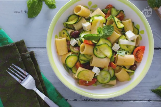 Ideale per un pranzo in terrazza o una cena informale tra amici, questo piatto unisce la praticità di una preparazione anticipata all'eleganza di un risultato fresco e composito. In tavola, il verde brillante delle zucchine e della menta contro il bianco della feta e il rosso dei ciliegini crea un effetto cromatico vivace, anticipando la freschezza che si ritroverà al gusto.