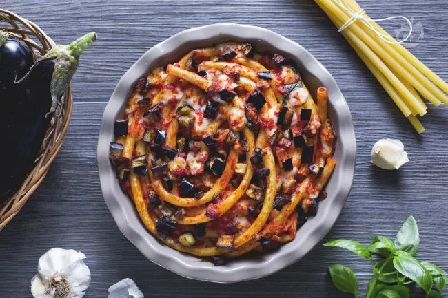 La magia risiede nei contrasti ben orchestrati: la polpa tenera delle melanzane fritte, che quasi si scioglie, dialoga con la pasta al dente, mentre il caciocavallo Silano, filante e leggermente piccante, crea un legante cremoso. La passata di pomodoro, profumata d'aglio e basilico, non è un semplice sugo ma un fondo aromatico che permea ogni elemento, e il tocco finale del forno sigilla il tutto con una crosticina dorata e invitante, croccante fuori e morbidissima dentro.