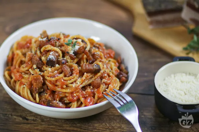 Il segreto risiede nell'alchimia tra la pancetta tesa, che si trasforma in croccanti guizzi salati, e la dolcezza persistente delle cipolle bianche soffritte. Su questo fondale, i pelati si schiudono in una salsa vellutata, esaltata dalla maggiorana che sprigiona note terrose e leggermente agrumate, mentre il Pecorino Romano DOP, grattugiato al momento, aggiunge una punta di sapidità granulosa. Perfetto per una cena informale tra amici, questo primo piatto unisce una preparazione apparentemente semplice a un risultato di grande carattere. La mantecatura finale con l'acqua di cottura lega il tutto in una cremosità avvolgente che fa di ogni forchettata un momento di puro conforto.
