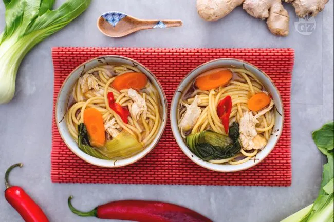 Il segreto risiede nell'armonia dei contrasti: la pasta di curry rossa sviluppa un fondo ricco e profumato, mentre lo zenzero fresco e il peperoncino apportano una vivace punta di freschezza che rischiara il palato. I vermicelli, cotti direttamente nel brodo, diventano veicoli di sapore, assorbendo l'intensità del liquido insieme alla dolcezza croccante delle carote e alla delicatezza erbacea del pak choi. Perfetta per una cena informale ma curata, questa zuppa unisce praticità a risultati d'impatto: i sapori si amalgamano ulteriormente con il riposo, regalando un piatto ancor più rotondo se preparato con un po' di anticipo. L'effetto finale è quello di un abbraccio caldo, speziato e incredibilmente soddisfacente.