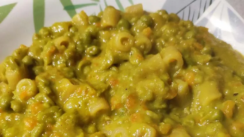 La dolcezza caramellata della cipolla trifolata nell'olio extravergine dialoga con la freschezza erbacea dei piselli, mentre la carota dona una nota terrosa e una punta di colore che si scioglie nella consistenza. Il risultato è un brodo cremoso che avvolge la pasta corta senza sopraffarla, creando un equilibrio tra la struttura al dente e la carezza liquida della zuppa. Perfetta per una cena in solitaria che non rinuncia al piacere, questa preparazione unisce l'essenziale praticità degli ingredienti a un risultato che sa di cura domestica e di attenzione ai dettagli, lasciando in bocca un ricordo caldo e persistente.