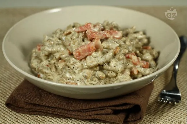 Un abbraccio cremoso che conquista il palato, dove la rusticità montanara incontra l'eleganza della tavola. Gli Spätzle di grano saraceno non sono un semplice primo piatto, ma una promessa di profondità: quella terrosa del cereale integrale che dialoga con la generosità burrosa della panna, in un equilibrio tra sostanza e raffinatezza. La nota distintiva arriva dalla pancetta affumicata, che non si limita a guarnire, ma infonde un carattere deciso e carnoso, trasformando ogni forchettata in un'esperienza sensoriale completa.