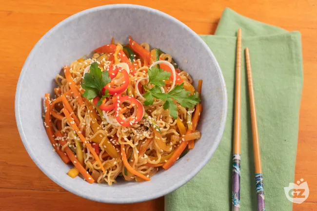 Un turbinio di sapori orientali che danza nel piatto: i noodles con verdure saltate sono un manifesto di vitalità culinaria, dove la promessa di un'esperienza sensoriale completa si realizza in ogni boccone. Questo piatto non si limita a sfamare, ma racconta una storia di contrasti armoniosi tra il calore dello zenzero e la freschezza delle verdure, tra la croccantezza appena accennata e la morbidezza avvolgente della pasta.