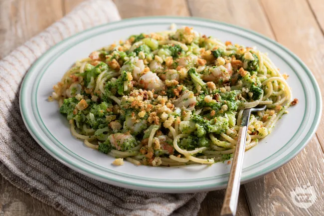 La magia risiede nei contrasti ben calibrati: la succosità tenera dei crostacei, appena accennata dalla panure croccante al limone e timo, si staglia contro la consistenza morbida ma presente delle cimette di broccoli. Il tutto è legato da un filo d'oro di olio extravergine, riscaldato dall'aglio, dal peperoncino e dalla potenza umami dei filetti d'acciuga, che fonde i mondi senza appiattirli.