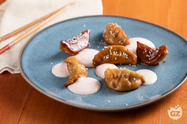 Ideali per un aperitivo ricercato o un antipasto che lascia il segno, questi dumpling sono piccole opere d'arte culinaria. La loro eleganza informale e l'equilibrio di sapori li rendono perfetti per stupire gli ospiti con un piatto dal carattere internazionale ma dall'esecuzione accessibile.