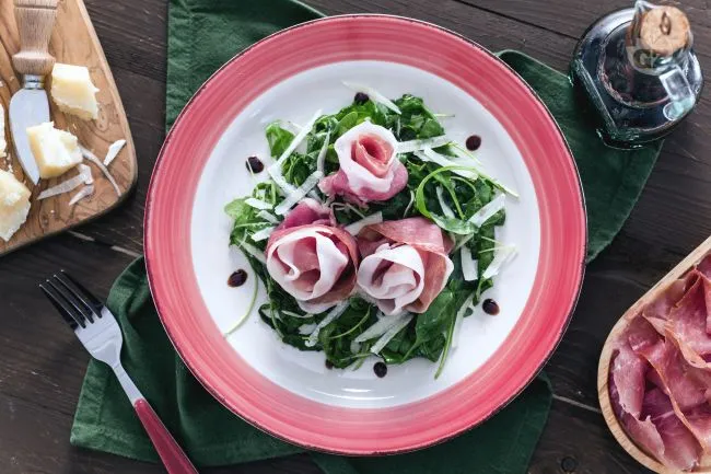 salata del prosciutto di Parma dialoga con il morso pepato della rucola, promettendo un'esperienza che è insieme raffinata e profondamente terrena.