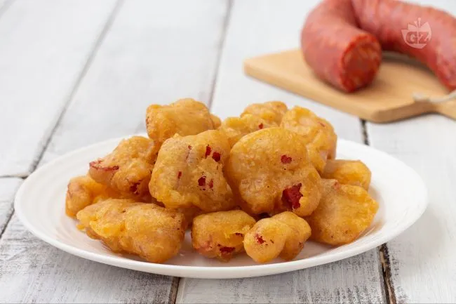 incontra l'arte della frittura perfetta. Questi bocconcini promettono un viaggio sensoriale che parte dallo scricchiolio dell'involucro per approdare al cuore morbido e speziato. La loro anima è un dialogo tra il carattere deciso della carne stagionata e la leggerezza sorprendente di una pastella che sa di nuvole effimere.
