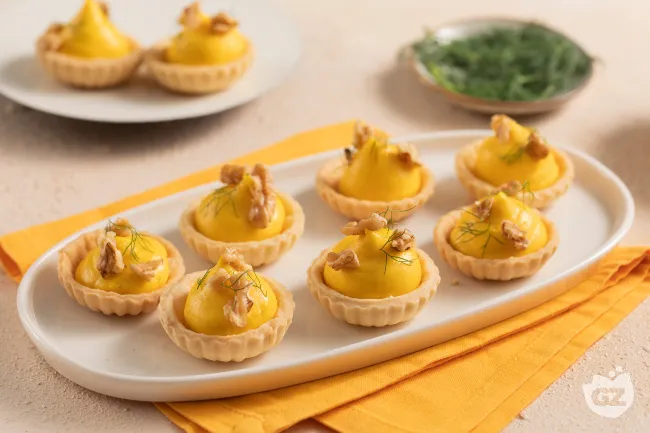 Perfette per un aperitivo ricercato o come preludio a una cena importante, si preparano con anticipo, guadagnando carattere. L'effetto finale è quello di un gioiello culinario: bello a vedersi, con la sua crema giallo-oro e le guarnizioni a contrasto, e ancor più bello da scoprire.