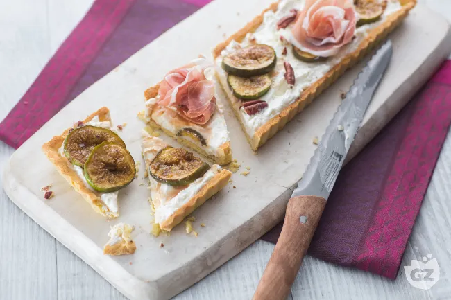 La magia risiede nella sinfonia degli ingredienti: la cremosità vellutata della robiola e del formaggio fresco dialoga con la dolcezza intensa dei fichi caramellati, mentre il prosciutto crudo aggiunge note sapide che vengono sorprendentemente esaltate dalla croccantezza burrosa delle noci pecan. La frolla, friabile e leggermente salata, fa da palcoscenico a questo incontro di sapori, regalando un'esperienza tattile che va dallo scioglievolezza al croccante.