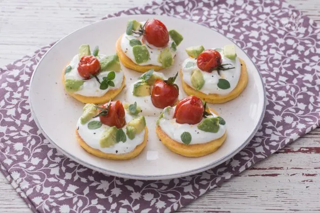 I pomodorini arrosto concentrano in una caramella salata il sole estivo, mentre l'avocado aggiunge note burrose che si sciolgono al palato. Perfetti per un aperitivo ricercato o un antipasto che introduce un pasto estivo, conquistano per l'equilibrio tra rustico e raffinato, tra calore e freschezza.