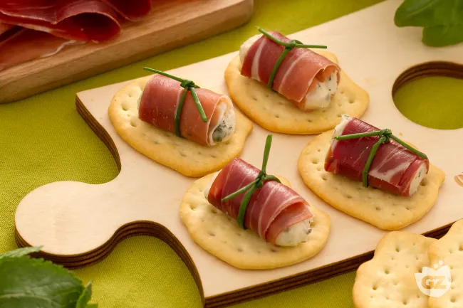 Il contrasto è l'anima della preparazione: la friabilità sottile del cracker incontra la morbida carezza della robiola, arricchita dal fresco mosaico di erbe che risveglia il palato. Su questo letto, il San Daniele si adagia con la sua dolcezza sapida e le note complesse di affumicatura leggera, creando un dialogo perfetto tra la grassezza delicata del formaggio e la persistenza aromatica del prosciutto crudo dop.