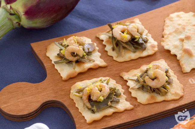Un incontro di terre e mare che si trasforma in un'esperienza croccante e raffinata: le sfoglie con carciofi e gamberetti sono un inno alla semplicità elegante, dove la promessa di una texture irresistibile si sposa con la freschezza mediterranea. Il piatto seduce fin dal primo morso, bilanciando la rusticità dei carciofi con la delicatezza dei crostacei in un abbraccio aromatico che parla di primavera e di sapori puliti.