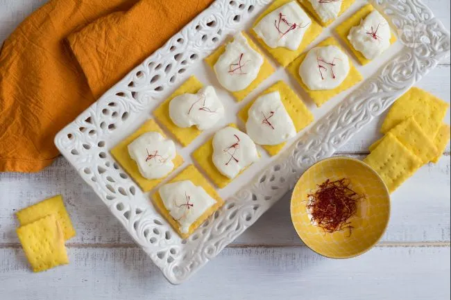 mediterranei. Questi sottili dischi friabili promettono un viaggio sensoriale che parte dalle note terrose dello zafferano per approdare alla delicatezza lattea del formaggio fresco, trasformando un semplice aperitivo in un momento di puro piacere gastronomico.