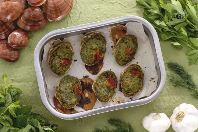 Il segreto risiede nel contrasto magistrale tra la dolcezza marina del mollusco e il coro vibrante delle erbe fresche tritate finemente. Il prezzemolo e il basilico offrono un fondo erbaceo e pepato, mentre la menta e l'erba cipollina introducono note fresche e leggermente pungenti, tutte fuse dalla grattugia calda del Grana Padano. La scorza di limone non trattato, infine, è il tocco di luce che solleva l'insieme, prevenendo qualsiasi senso di pesantezza.