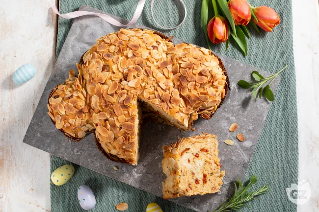 Il segreto risiede nei contrasti sapientemente orchestrati: la dolcezza terrosa delle patate si fonde con l'umami intenso dei pomodori secchi, mentre le erbe aromatiche – timo, rosmarino e salvia – rilasciano note balsamiche che tagliano la ricchezza. Le scaglie di mandorle, tostate al punto giusto, offrono la nota finale di croccantezza e un retrogusto tostato che completa il quadro sensoriale. Perfetta per una domenica in famiglia o come centro tavola durante un pranzo festivo, questa focaccia a forma di colomba unisce il simbolo della convivialità a una sostanza che sa di casa e di abbraccio. Un pane speciale che racconta una storia ad ogni fetta.
