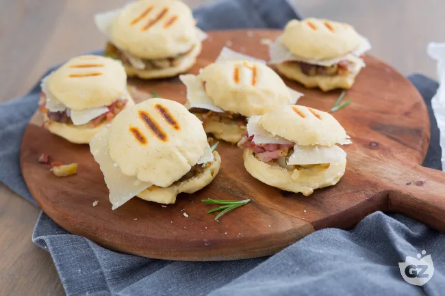 Il carattere del piatto nasce dal dialogo tra la dolcezza terrosa delle castagne e la sapidità intensa del bacon, avvolti da un ragù che profuma di rosmarino e pepe nero appena macinato. A completare, le scaglie di Grana Padano Riserva, che con la loro cristallina sapidità e le note di frutta secca, fondono il tutto in un sapore rotondo e persistente. Perfette per un aperitivo ricercato o come piatto unico in una cena informale, queste focaccine conquistano per la loro immediatezza e la profondità di gusto che si scioglie in bocca, lasciando una scia di ricordi genuini.