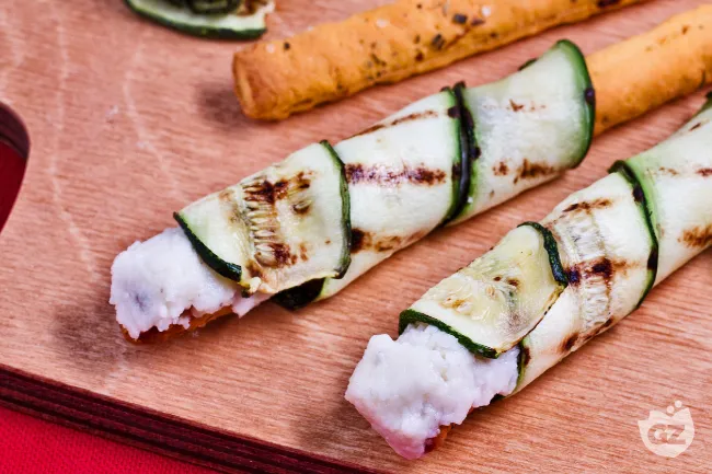 raffinata del finger food che trasforma l'aperitivo in un'esperienza sensoriale: gli Sfilati al pomodoro con zucchine e crema uniscono la croccantezza rustica dei grissini alla delicatezza avvolgente di una farcitura cremosa, promettendo un gioco di contrasti che seduce al primo morso.