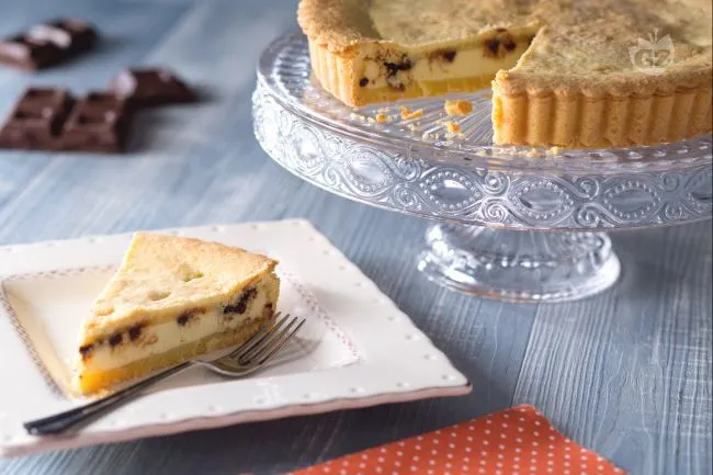 La magia nasce dall'incontro tra la freschezza lattea della ricotta, addolcita e arricchita dal coro aromatico delle scorze d'agrumi e della cannella, e le note profonde e spezzate delle gocce di cioccolato fondente. Ogni boccone offre un gioco di sensazioni: la croccantezza sottile della base, la cremosità morbida del ripieno e l'improvvisa, gratificante esplosione di cacao amaro che interrompe la dolcezza.