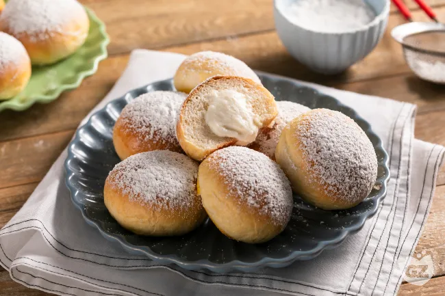 I fiocchi di neve napoletani sono un abbraccio di dolcezza lievitata che scioglie il cuore. Queste brioscine soffici custodiscono una promessa di delicatezza: un ripieno di crema che unisce la rustica sincerità della ricotta alla carezza ariosa della panna, legate dal filo dorato della vaniglia. Un'antitesi perfetta tra la morbida resistenza dell'impasto e il cuore fresco e cedevole.