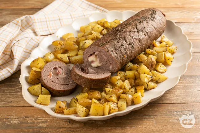 La magia risiede nel contrasto tra l'involucro esterno, compatto e aromatico grazie al timo e al Grana Padano, e il cuore segreto che si rivela al taglio: il prosciutto cotto dona una nota sapida e leggermente affumicata, mentre il provolone si fonde in filanti lame di cremosità intensa. Le patate, assorbendo i succhi di cottura, completano l'opera con la loro polpa morbidissima e una superficie caramellata, creando un perfetto equilibrio tra il rustico e il raffinato.