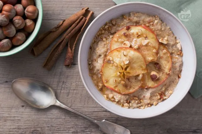 Un abbraccio mattutino che trasforma l'umile porridge in un'esperienza sensoriale. La cremosità vellutata dell'avena, cullata da latte e acqua, diventa la tela su cui si stende il carattere deciso delle mele Fuji caramellate: una promessa di dolcezza profonda e calore speziato che risveglia i sensi con eleganza rustica.