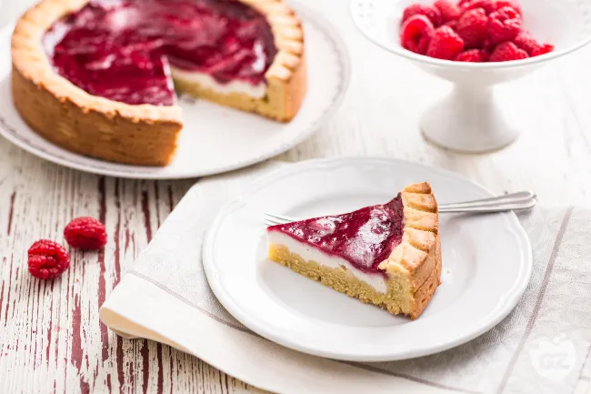 La magia risiede nel dialogo tra gli ingredienti: la ricotta, setacciata per una cremosità vellutata, viene illuminata dalla scorza di limone e addolcita dal miele millefiori, che le dona un'aura floreale. Contro questa delicatezza, la confettura di lamponi setacciata offre un guizzo di frutta intensa e una vibrante nota agrodolce, mentre la pasta frolla, montata per incorporare aria, garantisce una croccantezza leggera che non stanca.