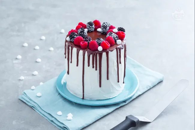 Il drip cake con ganache ai lamponi è un'esplosione di eleganza golosa, dove la morbidezza della torta incontra l'irresistibile seduzione di una colata vellutata. Questa creazione non è solo un dolce, ma una promessa di contrasti perfetti: l'altezza scenografica parla di generosità, mentre la decorazione racconta una storia di delicatezza e colore.