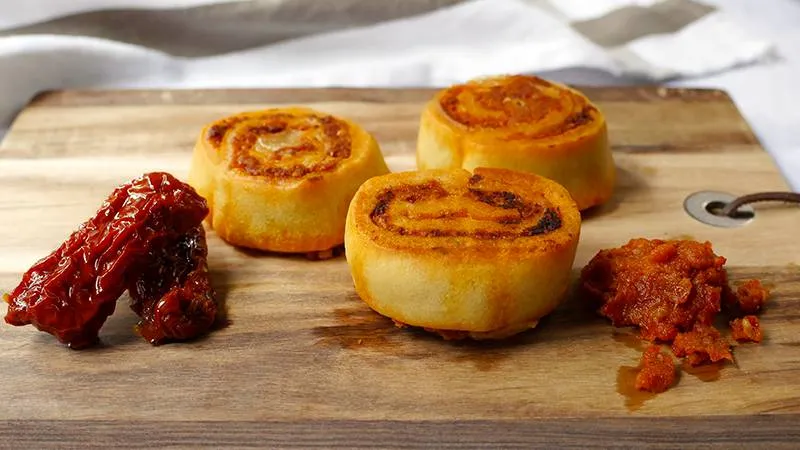 Le girelle al pesto di pomodori secchi sono un inno alla generosità mediterranea, dove la morbidezza avvolgente della pasta lievitata incontra l'esplosione sapida di un pesto rustico e corposo. Questo piatto promette un viaggio sensoriale tra la fragranza dorata del forno e il cuore filante della farcitura, trasformando ingredienti semplici in un'esperienza conviviale e appagante.
