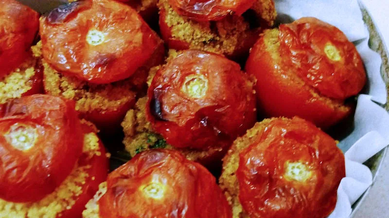 I pomodori ripieni di miglio sono un inno alla semplicità mediterranea che si trasforma in eleganza rustica. Questo piatto promette un'esperienza di sapori puliti e ben definiti, dove la dolcezza carnosa del pomodoro incontra la rusticità terrosa del cereale in un abbraccio al forno che esalta ogni ingrediente. È una promessa culinaria di sostanza e leggerezza che si realizza in ogni boccone.