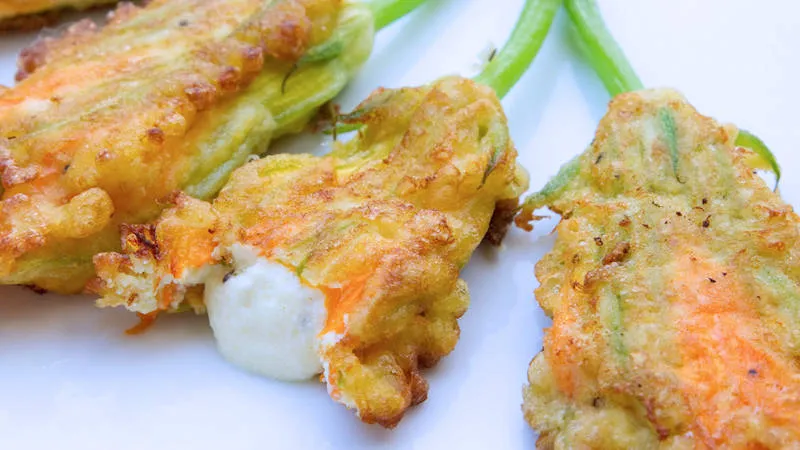 I fiori di zucca fritti ripieni di mozzarella sono un inno alla croccantezza e alla sapidità, un antipasto che promette e mantiene il piacere di un contrasto perfetto tra l'involucro dorato e il cuore filante. Racchiudono l'essenza della cucina conviviale, dove la semplicità degli ingredienti si trasforma in un'esperienza sensoriale memorabile.