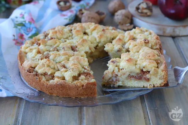 La sbriciolata alle mele con noci è un abbraccio rustico che parla di autunno e di tradizione, dove la delicatezza delle mele si fonde con il carattere deciso della frutta secca in un gioco di consistenze che conquista al primo morso. Promette un dolce dall'anima genuina, dove la semplicità degli ingredienti si trasforma in complessità armoniosa, perfetta per chi cerca comfort senza rinunciare all'eleganza della cucina di casa.