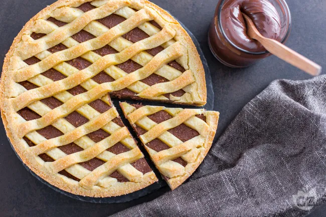 La crostata con ricotta e Nutella è un abbraccio dolce che unisce la rustica sincerità della pasticceria casalinga alla seduzione di un dessert da pasticceria. La promessa è quella di una doppia cremosità: quella delicata e granulosa della ricotta che dialoga con la densità vellutata della crema alle nocciole, tutto racchiuso in un guscio friabile che profuma d'agrumi. La pasta frolla, arricchita dalle scorze di limone e arancia, non è un semplice contenitore ma una nota aromatica fondamentale che taglia la dolcezza con la sua freschezza citrina.