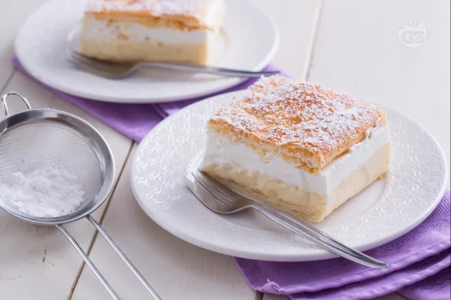 vellutata della crema pasticcera, mentre la panna montata aggiunge un tocco di leggerezza celestiale. Questa torta slovena non è un semplice dessert, ma una promessa di eleganza rustica che conquista palato e occhi con la sua architettura impeccabile.