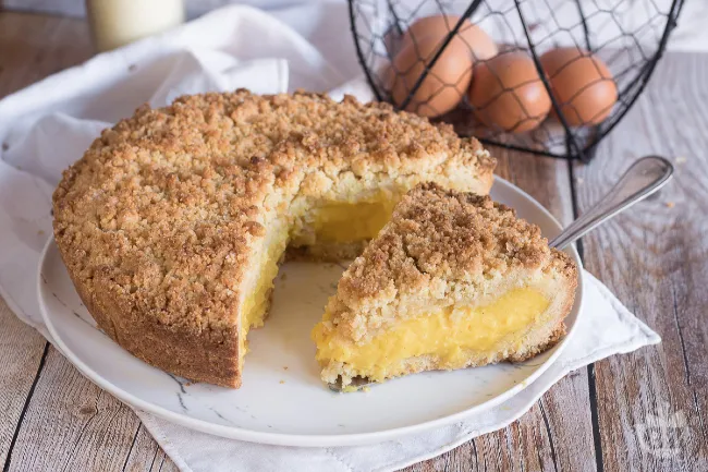 La magia sta nell'incontro tra il burro freddo, che lavorato con sapienza regala una crosta friabile e dorata, e la crema pasticcera, liscia e avvolgente, profumata dal vero baccello di vaniglia. Mentre i granelli di zucchero caramellano leggermente in forno, i tuorli donano alla farcitura una ricchezza morbida e un colore sole.