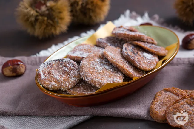La farina di castagne, cuore di questa preparazione, sprigiona note terrose e dolciastre che si sposano con la delicatezza dell'acqua calda, creando un impasto vellutato. Il contrasto tra la superficie friabile, appena sfregiata dalla frittura, e l'interno morbidamente compatto, esplode in bocca prima di arrendersi alla polvere finale di zucchero, che aggiunge un guizzo di luce e una sottile scintilla di dolcezza pura.