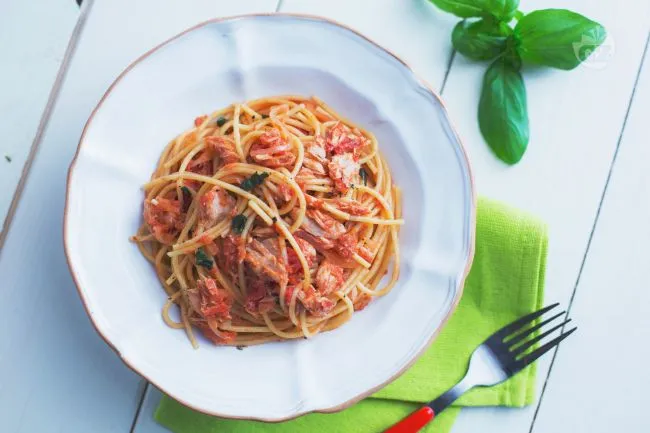 La magia nasce dall’incontro tra la dolcezza caramellata delle cipolle dorate e la sapidità profonda del tonno sott’olio, che si scioglie in un fondo di pomodoro corposo e vellutato. Ogni forchettata cattura gli spaghetti avvolti in una salsa ambra, punteggiati dal fresco contrasto erbaceo del basilico e del prezzemolo, con l'aglio che dona una nota aromatica persistente senza invadere.