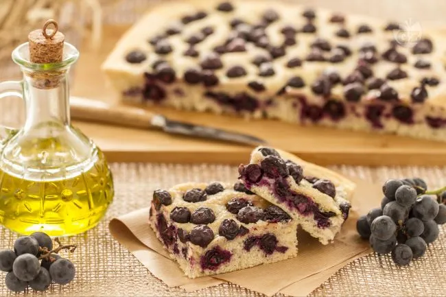 La magia risiede nel contrasto sensoriale: la crosta dorata e leggermente croccante, grazie all'olio extravergine, cede il passo a una mollica soffice e umida, punteggiata di acini che si caramellano in cottura, rilasciando note mielate. Lo zucchero e il malto non dolcificano semplicemente, ma costruiscono una profondità aromatica che esalta il carattere terroso dell'uva fragola, mentre l'olio lega ogni boccone con un filo d'oro liquido.