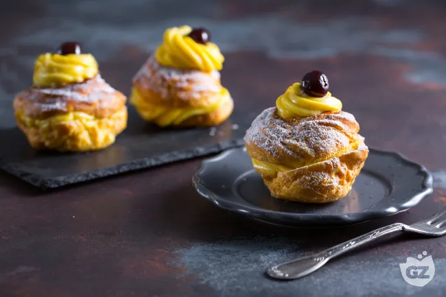 Perfette per concludere una cena con gli amici o per trasformare un pomeriggio in un momento speciale, queste zeppole uniscono l'effetto scenografico di un dessert da pasticceria alla piacevole praticità di una preparazione domestica raffinata.