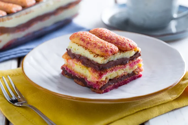 Al centro di questa sinfonia gustativa, il contrasto tra la crema pasticcera alla vaniglia – profumata dal baccello autentico – e quella al cioccolato fondente, intensa e vellutata, crea un gioco di chiaroscuri irresistibile. I Pavesini, imbevuti appena di Alchermes, cedono una nota floreale e lievemente speziata senza inzupparsi, mentre il cacao amaro in polvere offre un finale asciutto che pulisce il palato. La panna fresca liquida, montata con misura, aggiunge un tocco di morbidezza senza appesantire.