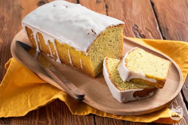 La magia nasce dall'incontro tra la scorza di limone, che infonde una nota fresca e penetrante, e i semi di papavero, piccoli puntini croccanti che regalano una piacevole sorpresa tattile ad ogni fetta. La panna fresca e il burro fondono queste note in una crumb soffice e umida, mentre la glassa agrumata, lucida e sottile, sigilla il tutto con un finale di brillante acidità che pulisce il palato.