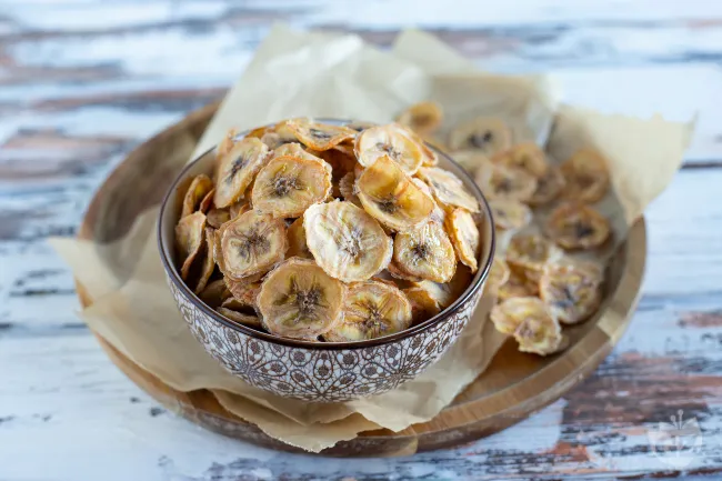 La magia risiede nel contrasto tra l'acidità vibrante del limone, che fissa il colore dorato e aggiunge un guizzo fresco, e la profonda, quasi mielata, intensità che le fette sviluppano in forno. Ogni chip diventa un piccolo disco dorato, traslucido ai bordi, con un profumo che ricorda i bananeti al sole e una consistenza che passa dallo schiocco iniziale a una dissolvenza delicata. Perfette per accompagnare un tè pomeridiano o come fine pasto leggero, queste chips conquistano per la loro eleganza rustica e la capacità di trasformare un frutto umile in una prelibatezza irresistibilmente genuina.