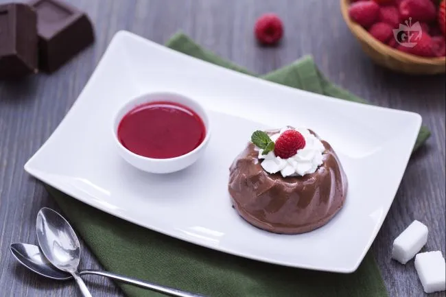 Il segreto risiede nel dialogo perfetto tra la densità vellutata del cioccolato, resa impeccabile dall'amido di mais, e la coulis di lamponi e fragole, che non è un semplice accompagnamento ma un contrappunto essenziale. La freschezza della menta e la leggerezza della panna montata completano l'assaggio, aggiungendo una nota erbacea e una consistenza ariosa che tagliano la ricchezza del cioccolato.