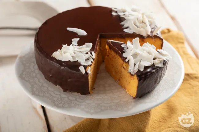La carota grattugiata finemente regala un'umidità persistente e una nota vegetale dolcissima, che dialoga in armonia con la farina di mandorle tostate e la polvere vellutata del cocco. La ganache al cioccolato fondente, lucida e setosa, non copre ma esalta questo gioco di trame, creando un momento di puro piacere tra la soffice mollica e il fresco croccante delle scaglie di cocco finale. Perfetta per una merenda d'autore o come dolce di chiusura a una cena informale, questa torta unisce l'appeal rustico della tradizione casalinga alla raffinatezza di un dessert da pasticceria, lasciando in bocca un ricordo lungo e appagante.