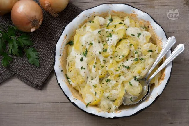 Le patate alla lionese sono un abbraccio di conforto che arriva direttamente dalla cucina borghese francese, dove l'umile si trasforma in sontuoso. Questo gratinato promette una ricchezza cremosa che avvolge il palato, bilanciata dalla dolcezza caramellata delle cipolle e dalla croccantezza dorata della superficie.