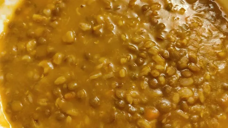 Il farro, con la sua consistenza piacevolmente gommosa, dialoga con la cremosità dolce della zucca che si sfalda al cucchiaio, mentre le lenticchie rilasciano il loro fondo terroso, arrotondato dal tomo caldo del concentrato di pomodoro e dalla punta aromatica dell'alloro. Ogni boccone è un equilibrio tra la rusticità del cereale e la dolcezza vellutata dell'ortaggio, legati da un brodo ricco e sostanzioso. Perfetta per una cera serata d'inverno, questa minestra unisce alla praticità di una cottura unica un risultato di grande carattere, lasciando una sensazione di pieno appagamento. Si serve come piatto unico, capace di conquistare per la sua schietta e sostanziosa bontà.