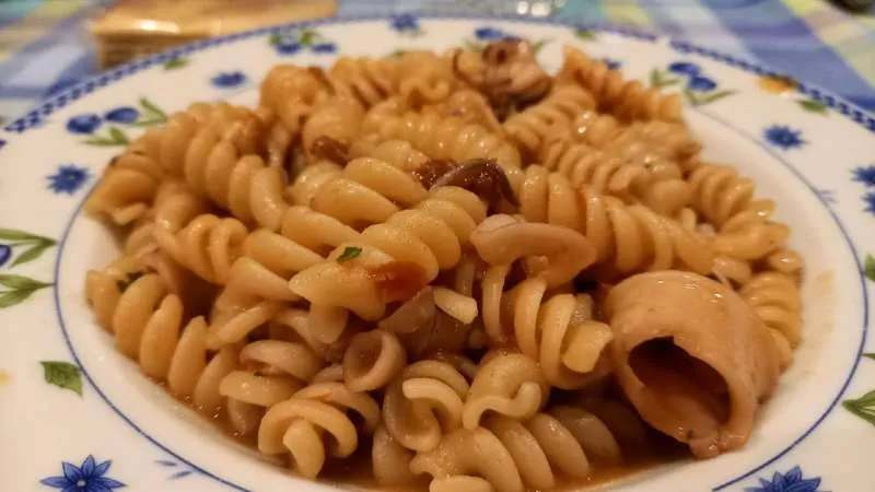 Il segreto risiede nel dialogo audace tra la dolcezza carnosa delle seppioline, stufate nel vino bianco fino a diventare tenere, e l'acidità pungente, quasi caramellata, dei pomodorini secchi. A questo matrimonio si unisce l'acciuga, che si scioglie in un soffritto d'aglio e peperoncino, rilasciando un'umami che lega il tutto in una salsa corposa e avvolgente, capace di vestire perfettamente la pasta.